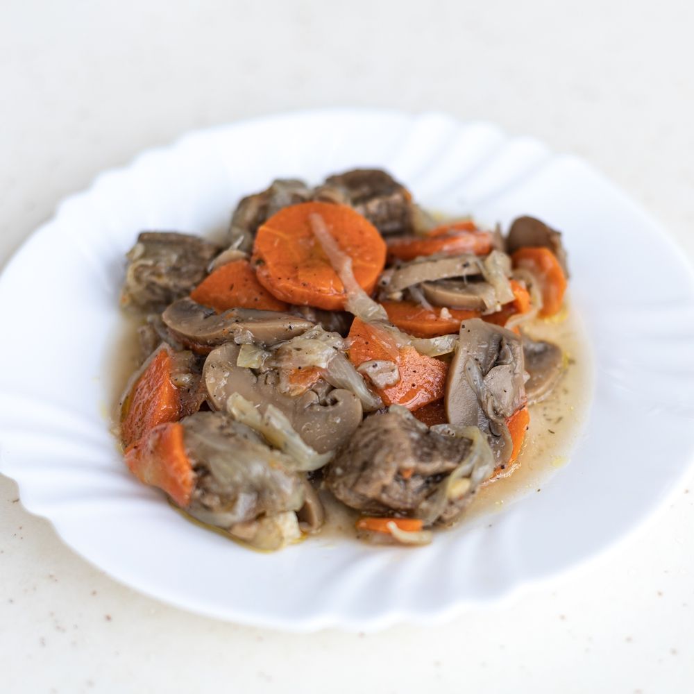 грибы, говядина, морковь, лук
