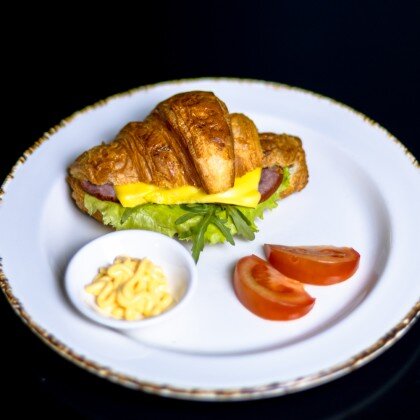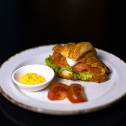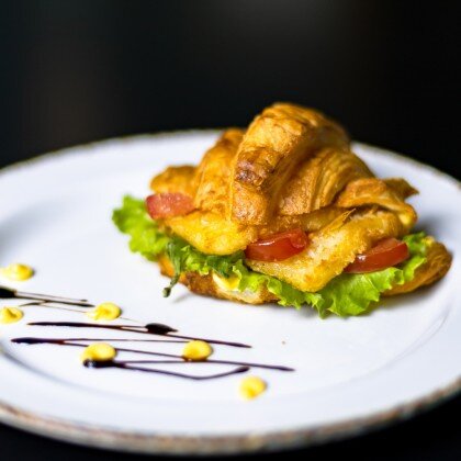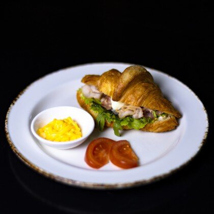 слоеное тесто, филе курицы, помидор, салатный лист, соус голландский