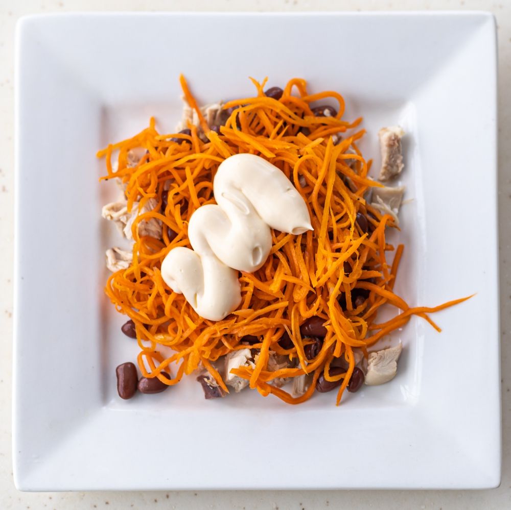 фасоль, корейская морковь, окорочок, майонез, зелень