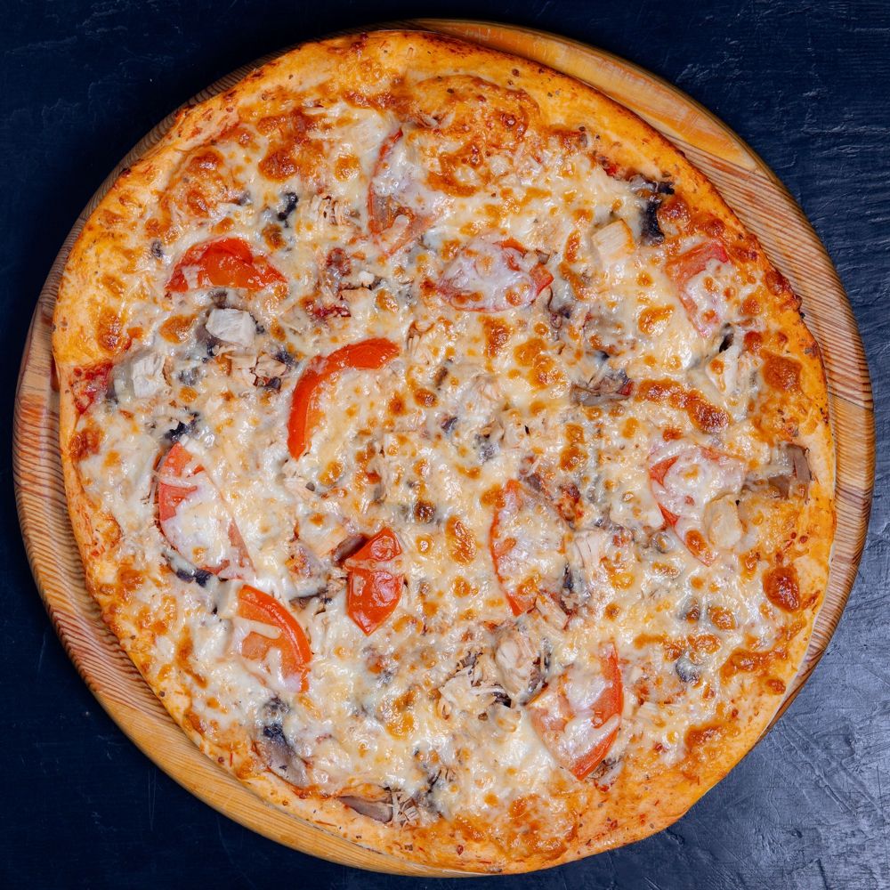 курица, шампиньоны, помидор, сыр