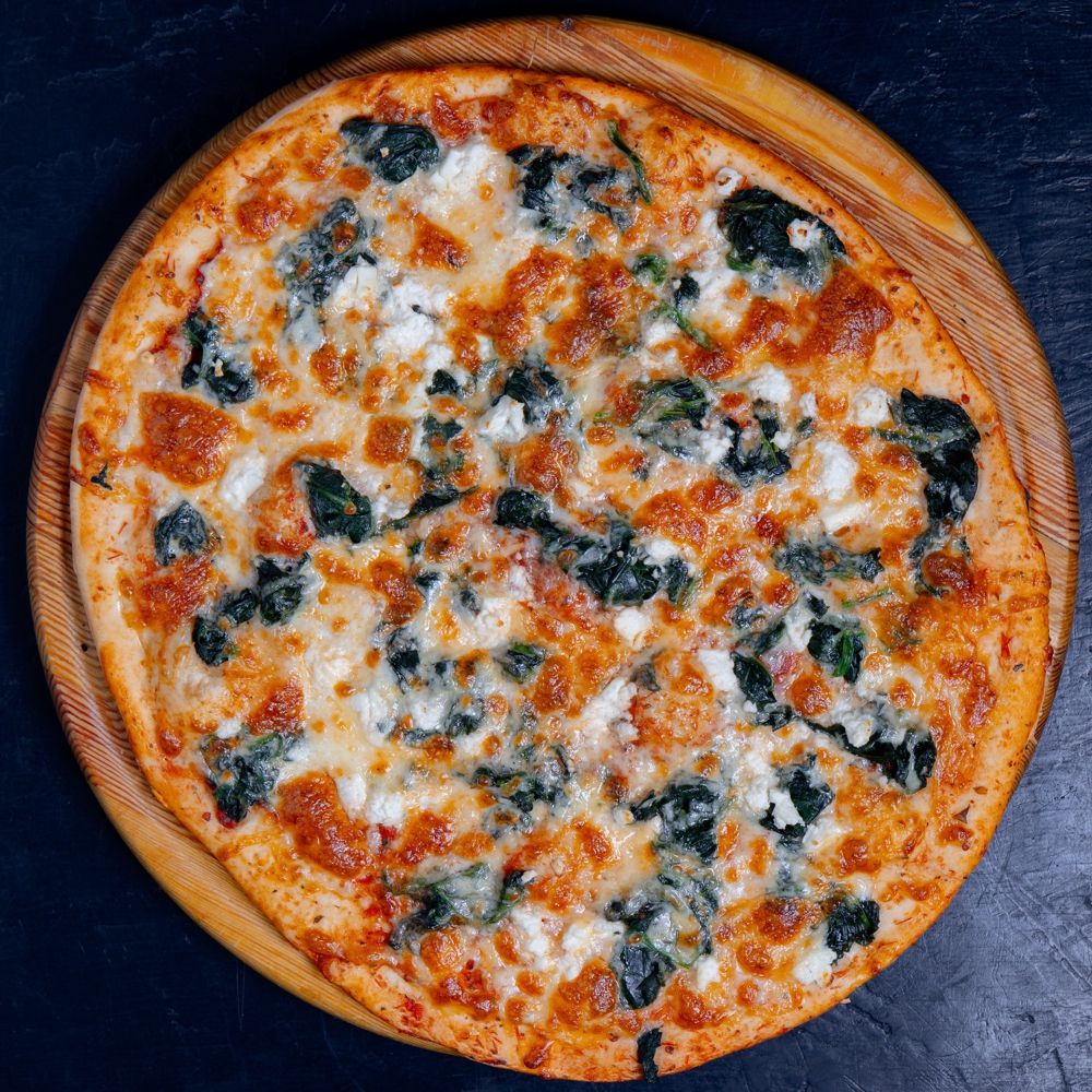 шпинат, соус для пиццы, сыр твёрдый, сыр фетаки