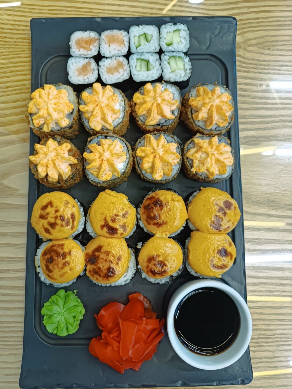 Маки лосось, темпура люкс, вулкан-яки