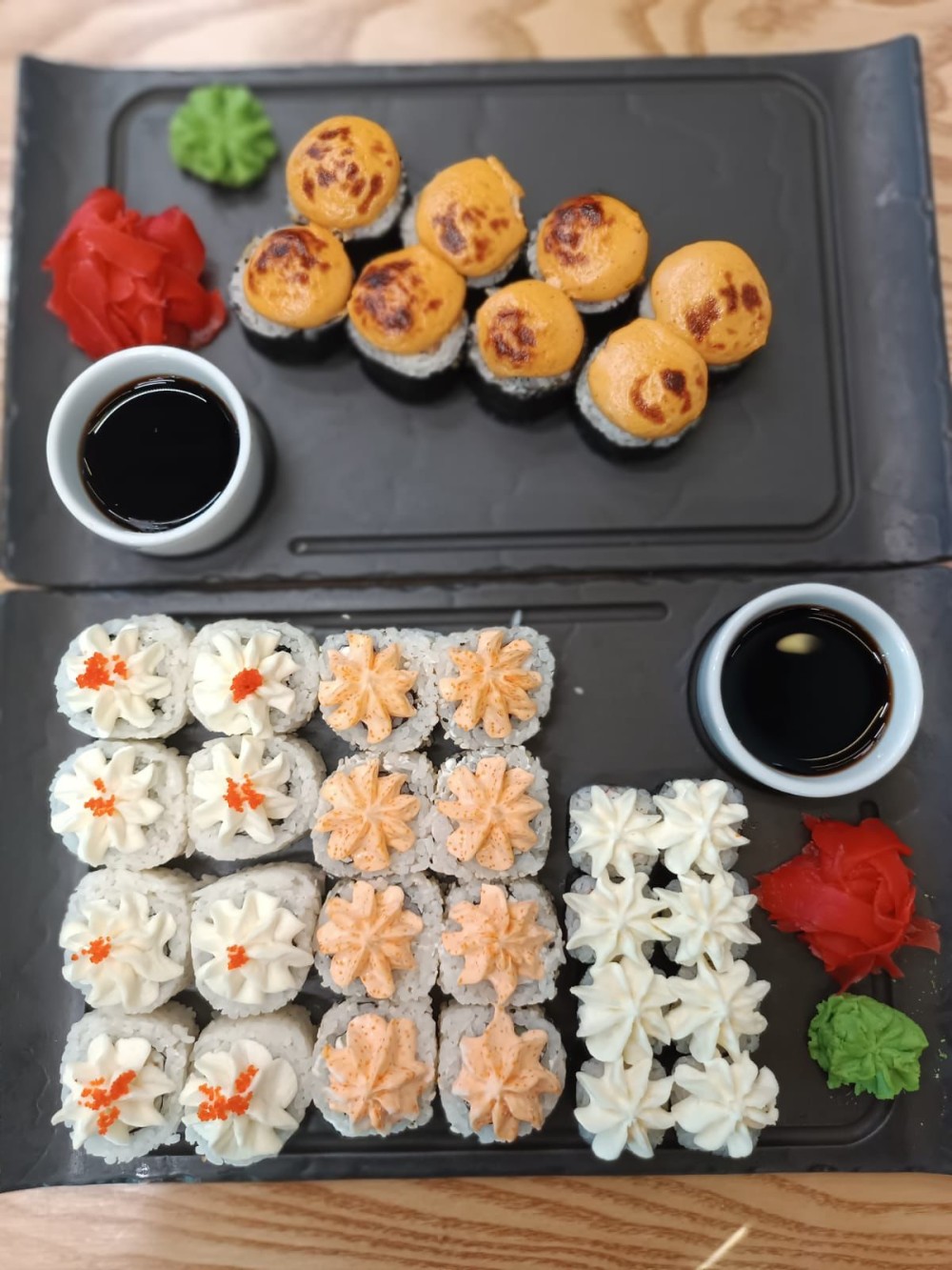 Вулкан-яки, ролл сливочный краб, ролл люкс, мак краб люкс