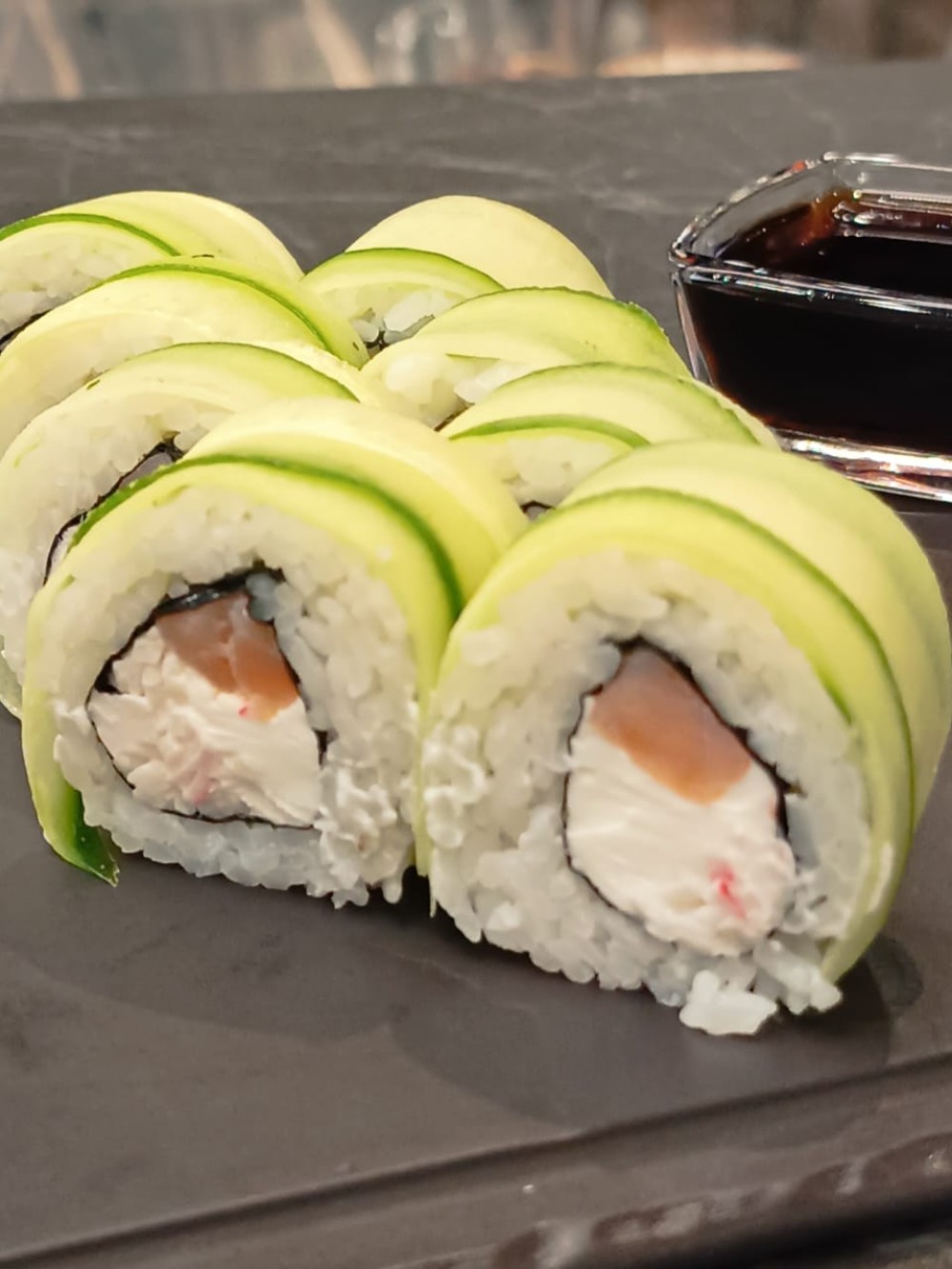 Рис, кремета, лосось, краб, огурец