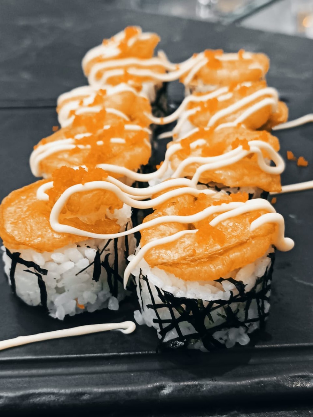 Рис, кремета, огурец, креветка, майонез, масаго