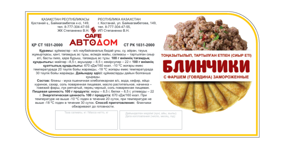 Блинчики заморожены. Перед приготовлением необходимо полностью разморозить и обжарить до готовности